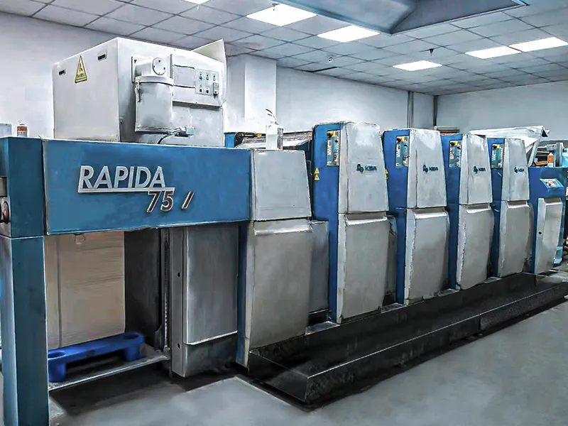 ■စက်-ဂျာမနီလုပ် KBA Rapida 75E (၆ ရောင်) နှင့် KBA Rapida 75 (၄ ရောင်) ပုံနှိပ်စက်များ အပါအဝင် ခေတ်မီစက်ယန္တရားများဖြင့် တပ်ဆင်ထားပြီး၊ တွန့်ခြင်း၊ ဖြတ်ခြင်း၊ နှင့် အခြား ပံ့ပိုးပေးသည့် စက်ကိရိယာများ ပါဝင်သည်။