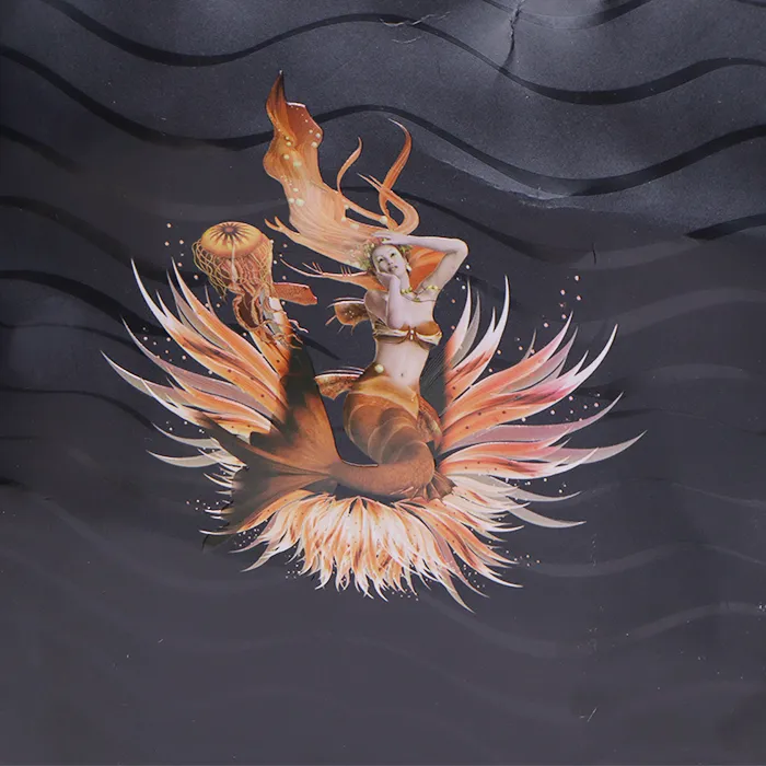 ယခင်က သတ္တုပြားနှင့် ချောမွေ့သော အသွင်အပြင်သည် သတ္တုပြားပူပူနှင့် မကြာခဏ ဆက်စပ်နေသည်။ သို့သော်၊ ဤအ၀တ်အထည်စျေးဝယ်အိတ်သည် အမြင်အာရုံနှင့်ထိတွေ့မှုအသစ်ကိုဖန်တီးရန် ရိုးရာပူဖောင်းတံဆိပ်တုံးထုခြင်းကို အစားထိုးကာ ပုံနှိပ်ခြင်းနှင့် ဖောင်းကြွခြင်းလုပ်ငန်းစဉ်ကို ဆန်းသစ်စွာအသုံးပြုသည်။ ပုံနှိပ်ခြင်းနှင့် ဖောင်းကြွခြင်းများသည် အရောင်အဆင့်များကို ပိုမိုရရှိစေပါသည်။ ဝယ်ယူသူများသည် တိကျသောရွှေ၊ ငွေ၊ ကြေးနီ သို့မဟုတ် ရောင်စုံသတ္တုပါးများကို ကန့်သတ်ထားသည့် ရိုးရာပူဖောင်းတံဆိပ်တုံးထုခြင်းမှ မဟုတ်ဘဲ ဖောက်သည်များသည် စိတ်ကြိုက်ပုံနှိပ်အရောင်များ၊ Matte သို့မဟုတ် အရောင်တောက်ပြောင်မှုများ၊ ဖောက်ထွင်းမြင်နိုင်သော သို့မဟုတ် အရောင်အသွေးရှိသော အကျိုးသက်ရောက်မှုများကို လွတ်လပ်စွာ စိတ်ကြိုက်ပြုလုပ်နိုင်ပါသည်။ ပုံနှိပ်ခြင်းနှင့် ဖောင်းကြွခြင်းတို့သည် အရောင်မျိုးစုံပေါင်းစပ်မှုကို ခွင့်ပြုသည်။ ဖောင်းကြွမှုလုပ်ငန်းစဉ်သည် စာသားများ၊ လိုဂိုများ၊ သို့မဟုတ် ပုံစံများကို သုံးဖက်မြင်အကျိုးသက်ရောက်မှုကိုပေးသည့်အပြင် ထုပ်ပိုးမှု၏အပြန်အလှန်အကျိုးသက်ရောက်မှုကို တိုးစေသည်။