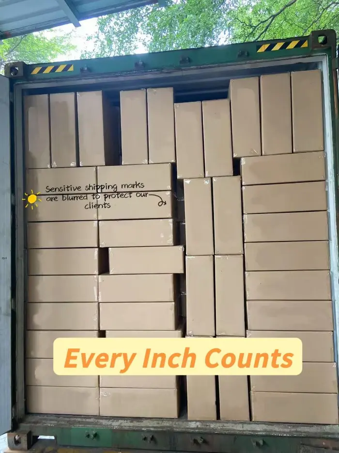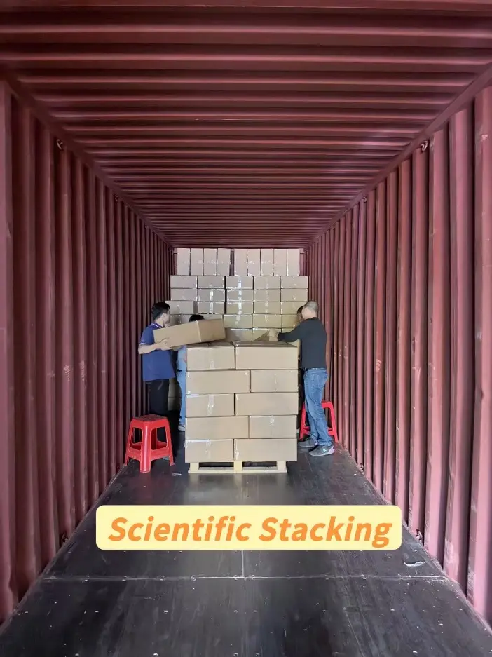 ကွန်တိန်နာတင်ခြင်းဆိုင်ရာ တွက်ချက်မှုများနှင့်ပတ်သက်၍ ကျွန်ုပ်တို့၏အင်အားသည် ပြီးပြည့်စုံသော ကွန်တိန်နာတင်ခြင်းအစီအစဉ်ကို ဒီဇိုင်းဆွဲပြီး စမ်းသပ်နေပါသည်။ ဤကွန်တိန်နာ၏ ပုံးအရေအတွက်ကို တွက်ချက်ရန် ကွန်တိန်နာအရွယ်အစားနှင့် အမျိုးအစား၊ ကာတွန်အရွယ်အစားနှင့် နေရာချထားမှုနည်းလမ်းကဲ့သို့သော အချက်အားလုံးကို ထည့်သွင်းစဉ်းစားပါမည်။ ကျွန်ုပ်တို့၏ ကွန်တိန်နာတင်ခြင်း၏ ခန့်မှန်းချက်သည် အလွန်တိကျကြောင်း သက်သေပြထားပါသည်။ ကျွန်ုပ်တို့၏ဝန်ထမ်းများအား အတန်းနှင့်ကော်လံမည်မျှတင်ရန်၊ မှန်ကန်သောကွန်တိန်နာတင်ခြင်းအစီအစဉ်နှင့် ကုန်ပစ္စည်းများကိုကာကွယ်ရန် သိပ္ပံနည်းကျနေရာချထားမှုနှင့် စည်းပုံနည်းလမ်းများစီစဉ်ရန် ကျွန်ုပ်တို့၏ဝန်ထမ်းများကို လမ်းညွှန်ရန်အတွက် ကွန်တိန်နာတင်ခြင်းအပြင်အဆင်ကိုလည်း ဂရုတစိုက်စီစဉ်ထားပါသည်။ ကုန်ပစ္စည်းများသည် ခရင်မ်စက္ကူပုံးများဖြစ်သောကြောင့် အရည်အသွေးမြင့် အသားအရေထိန်းသိမ်းမှု ထုပ်ပိုးသည့်သေတ္တာများတွင် အတွန့်များ သို့မဟုတ် အရေးအကြောင်းများ မပါရှိပါ။ ထို့ကြောင့် အရည်အသွေးကို ထိန်းသိမ်းရန် ပုံးများကို အထပ်လိုက် အလွှာလိုက် စီစဉ်ခြင်းအား ကျွန်ုပ်တို့ ပိုမိုအာရုံစိုက်ပါမည်။