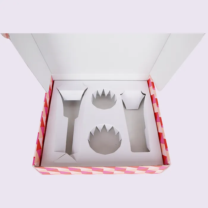 ထုပ်ပိုးမှုထည့်သွင်းရန်အတွက်၊ စက္ကူ၊ ပလပ်စတစ်၊ အမြှုပ်များနှင့် ဂေဟစနစ်သဟဇာတဖြစ်အောင် ပုံသွင်းထည့်သွင်းရန် ပစ္စည်းအများအပြားကို ထည့်သွင်းစဉ်းစားခဲ့သည်။ အဆုံးစွန်အားဖြင့်၊ ကျွန်ုပ်တို့သည် ၎င်းတို့၏စျေးနှုန်းချိုသာမှု၊ လျင်မြန်သောအလှည့်အပြောင်းအချိန်၊ ရိုးရှင်းမှုနှင့် သဘာဝပတ်ဝန်းကျင်နှင့်လိုက်ဖက်သော၊ ဇီဝပြိုကွဲပျက်စီးနိုင်သော သဘာဝအတွက် ပြန်လည်အသုံးပြုနိုင်သော စက္ကူထည့်သွင်းမှုများကို ရွေးချယ်ထားသည်။ Personal Care Shipping Boxes အတွက် စက္ကူထည့်သွင်းမှုများသည် စိတ်ကြိုက်မှိုများမလိုအပ်သောကြောင့် မှိုအခကြေးငွေ မလိုအပ်ပါ။ Doyoupack ၏ထုပ်ပိုးမှုဒီဇိုင်နာများသည် နမူနာအပေါ်အခြေခံ၍ အတိုင်းအတာ၊ အကွက်များ၊ တက်ဘ်များနှင့် စပ်ယှက်ခြင်းအင်္ဂါရပ်များနှင့် အံဝင်ခွင်ကျဖြစ်ပြီး ဖြတ်တောက်ခြင်းမှတစ်ဆင့် ထည့်သွင်းမှုကို ထုတ်လုပ်သည်။ စက္ကူထည့်သွင်းခြင်းသည် ကုန်ကျစရိတ်သက်သာသော၊ အပြည့်အဝ ဇီဝရုပ်ပျက်ဆင်းပျက်နိုင်သော၊ နှင့် eco-friendly အလွန်ကောင်းမွန်သော အစိတ်အပိုင်းတစ်ခုဖြစ်သည်။ ၎င်းသည် ထုတ်ကုန်ကို ကောင်းမွန်စွာပြသရုံသာမက ပံ့ပိုးမှုနှင့် အကာအကွယ်များကိုလည်း ပေးဆောင်သည်။ အရေးအကြီးဆုံးမှာ၊ ၎င်းသည် eco-molded ထည့်သွင်းမှုများ၊ ပလပ်စတစ်ထည့်သွင်းမှုများ၊ သို့မဟုတ် မီးခိုးရောင်ဘုတ်ထည့်သွင်းမှုများနှင့် နှိုင်းယှဉ်ပါက ထုတ်ကုန်အစုံ၏ စုစုပေါင်းအလေးချိန်ကို သိသိသာသာ လျော့နည်းစေသည်။ တစ်ပိုင်းတစ်စ ကော်ဖတ်ထည့်ခြင်းနှင့် တစ်ပိုင်းတစ်စ ကိုယ်ရေးကိုယ်တာ စောင့်ရှောက်မှု သင်္ဘောပုံးများသည် ပြားချပ်ချပ် သယ်ယူပို့ဆောင်ရေးကို လွယ်ကူချောမွေ့စေပါသည်။